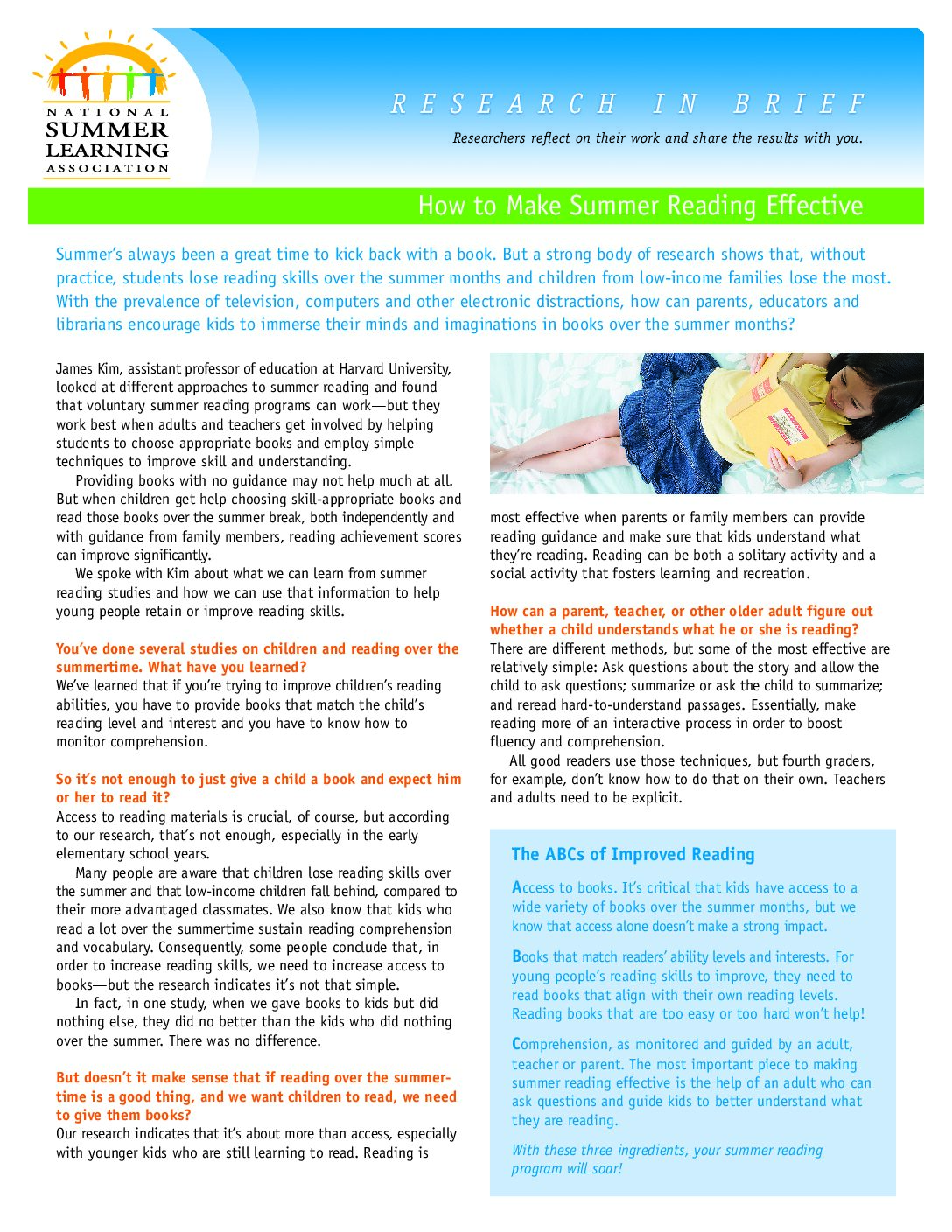 Research in Brief – With the prevalence of television, computers and other electronic distractions, how can parents, educators and librarians encourage kids to immerse their minds and imaginations in books over the summer months?