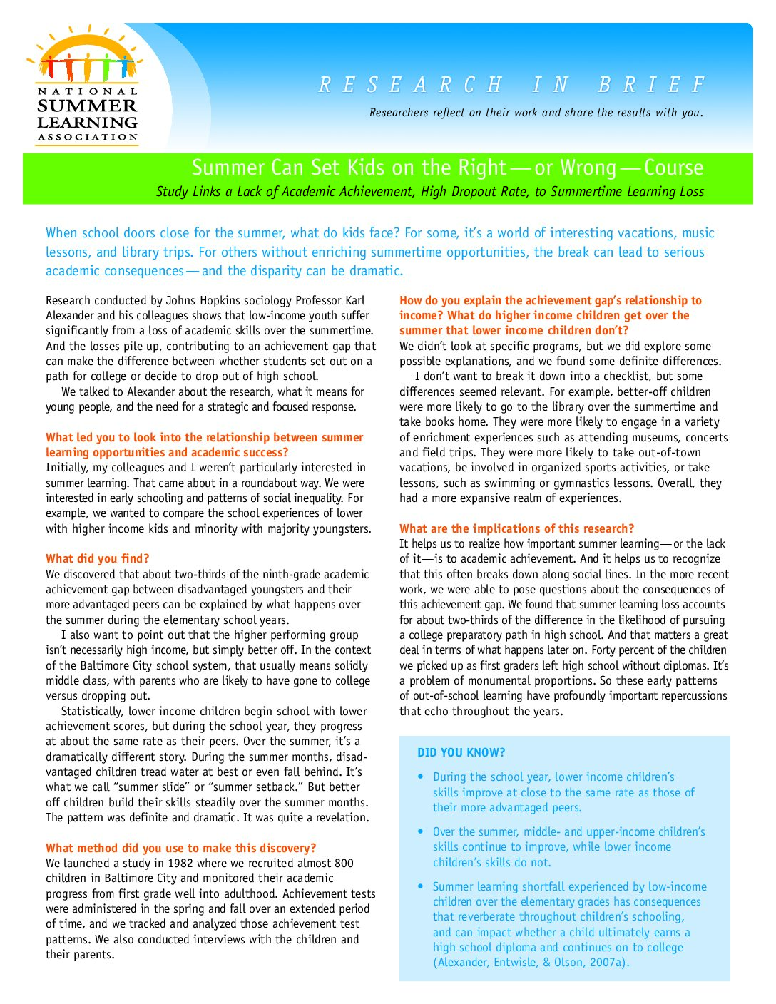 Summer Can Set Kids on the Right—or Wrong—Course